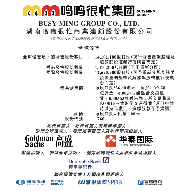 2026年1月20日,中国最大休闲食品饮料连锁零售商——鸣鸣很忙控股有限公司(01768.HK)正式启动招股,至1月23日截止,预计于1月28日在港交所主板挂牌上市。本次招股价区间定为每股229.6至236.6港元,每手100股,入场费高达23,898.62港元,拟全球发售1410万股,预计最高募集资金约33.36亿港元。